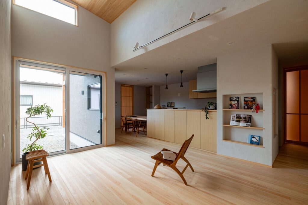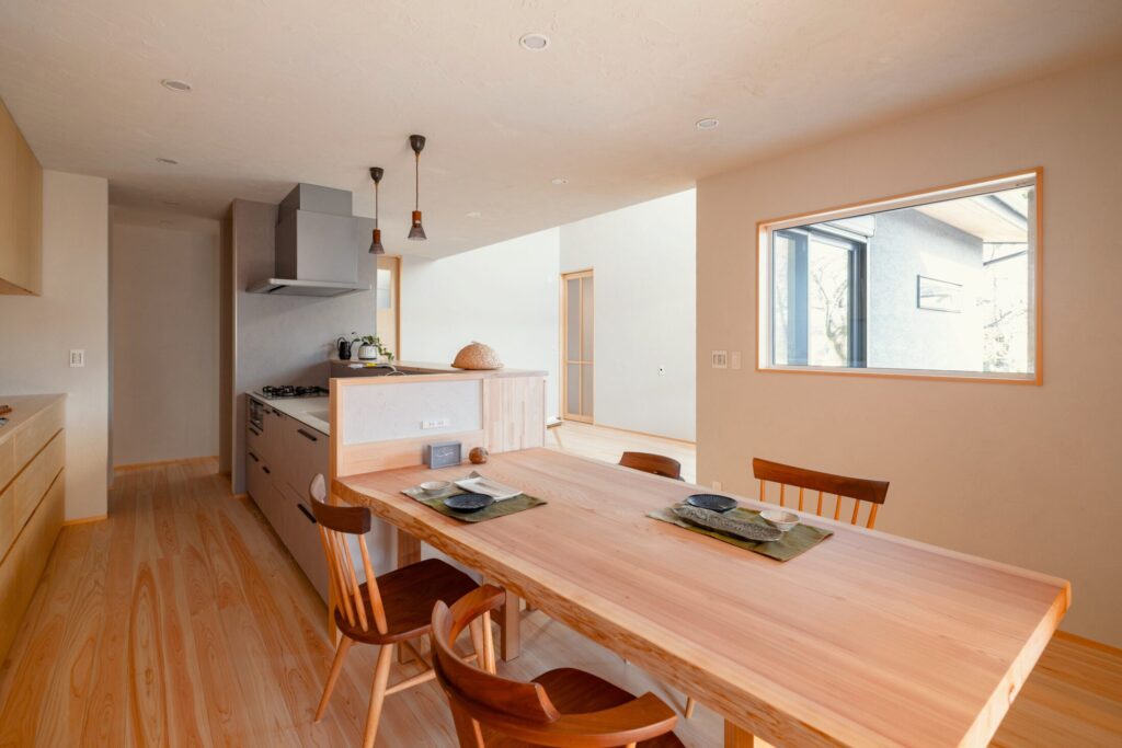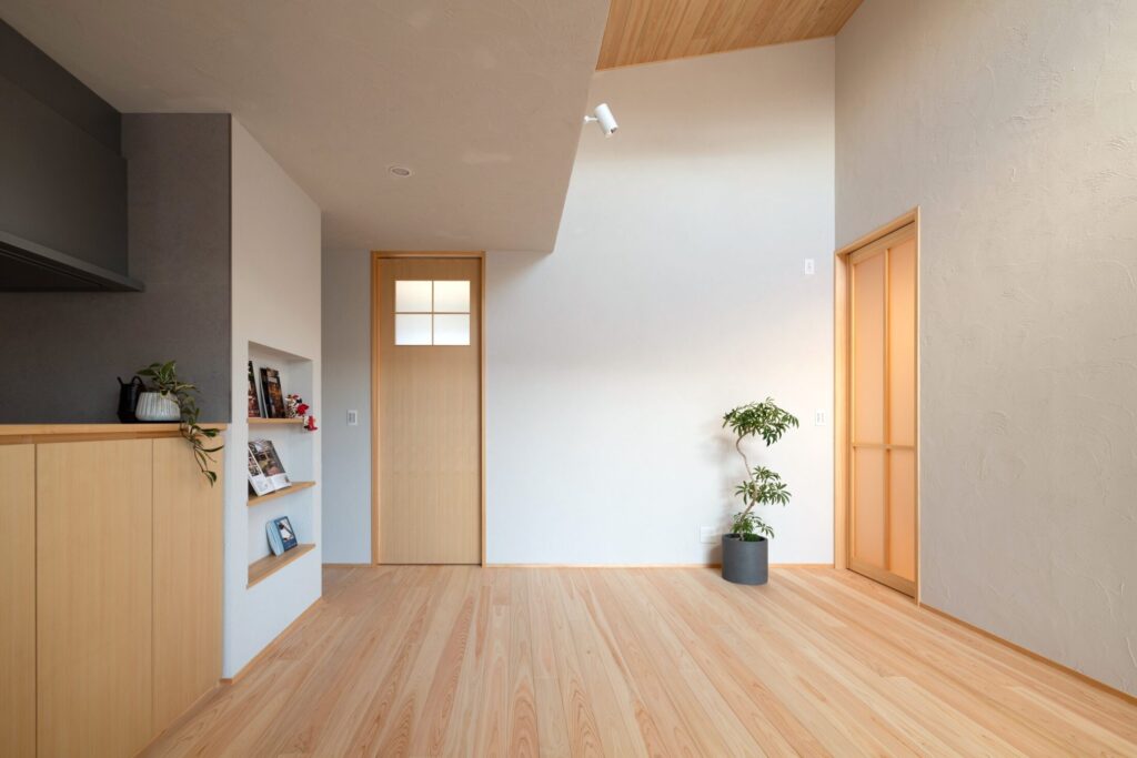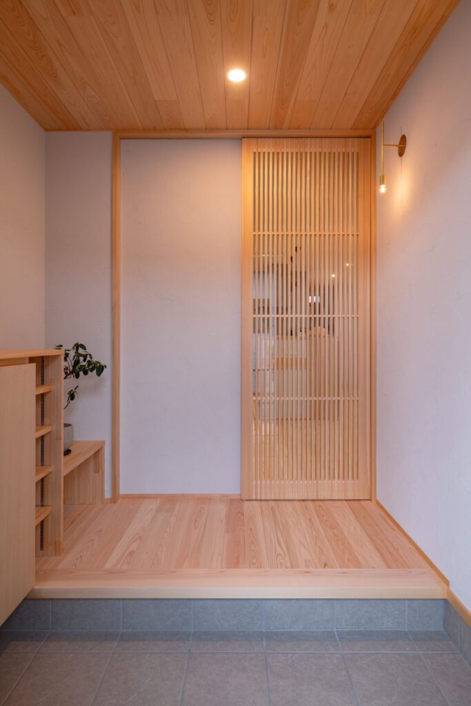 柔らかな色合いと桧の香りに包まれた、やさしい住まいです。